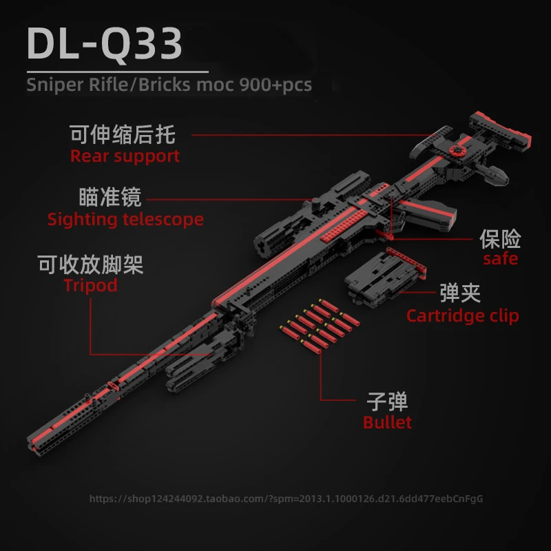 1. DL Q33 스나이퍼 라이플 빌딩 블록 조립 MOC 군사 벽돌 총 시력 총알 WW2 무기 기술 SWAT 완구 성인을위한 Product Id: 1005003453742669 |